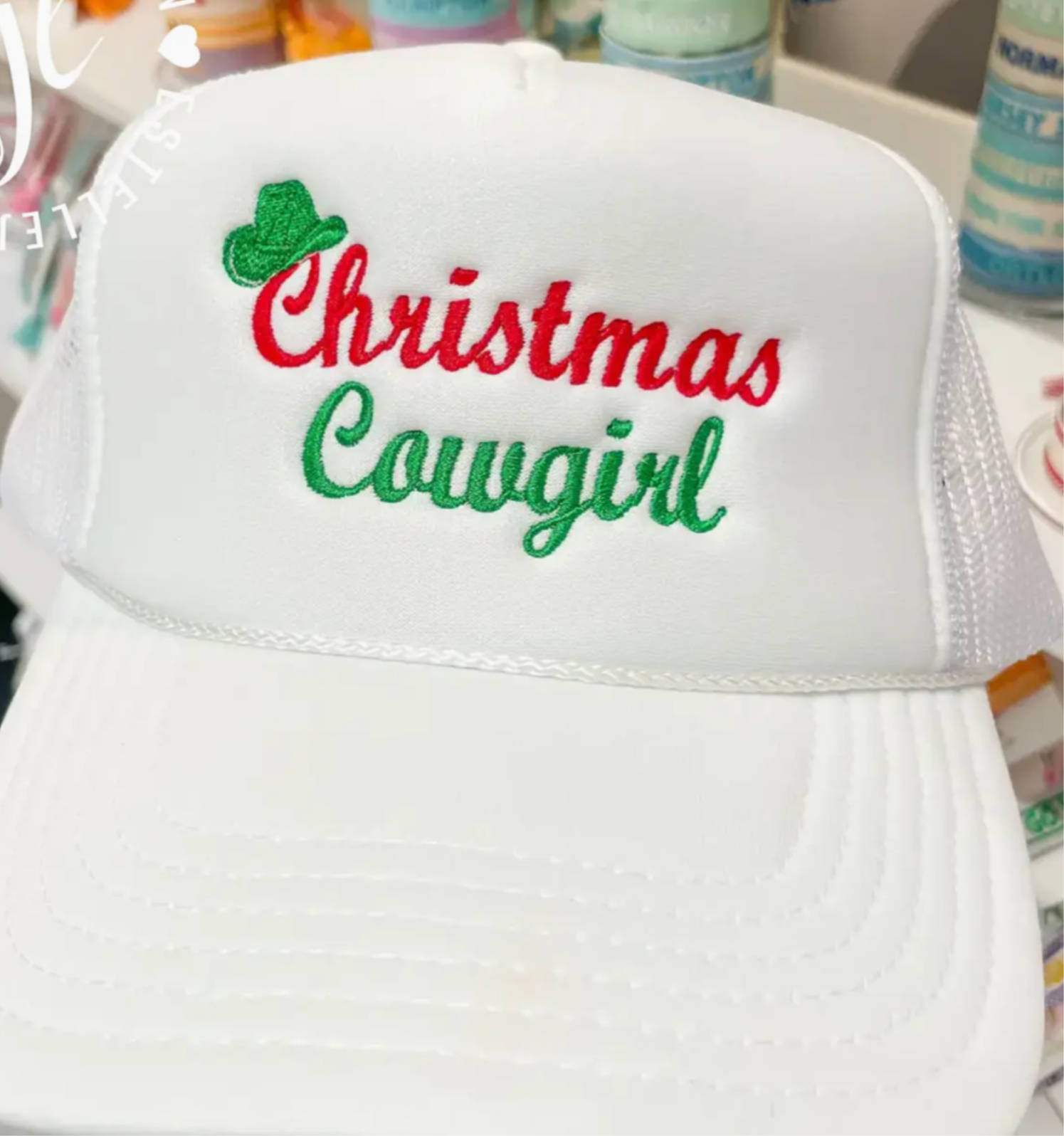 Christmas Cowgirl Embroidered Trucker Hat / Holiday Trucker Hat Designed and Curated by EstelleJoyLynn All Trucker Hats © Copyright EstelleJoyLynn, LLC Who’s a Christmas Cowgirl? Holiday Christmas Trucker Hats for your boutique. Trucker Hats come exactly as shown (colors may vary depending upon availability) Adjustable Snap Back - fits most