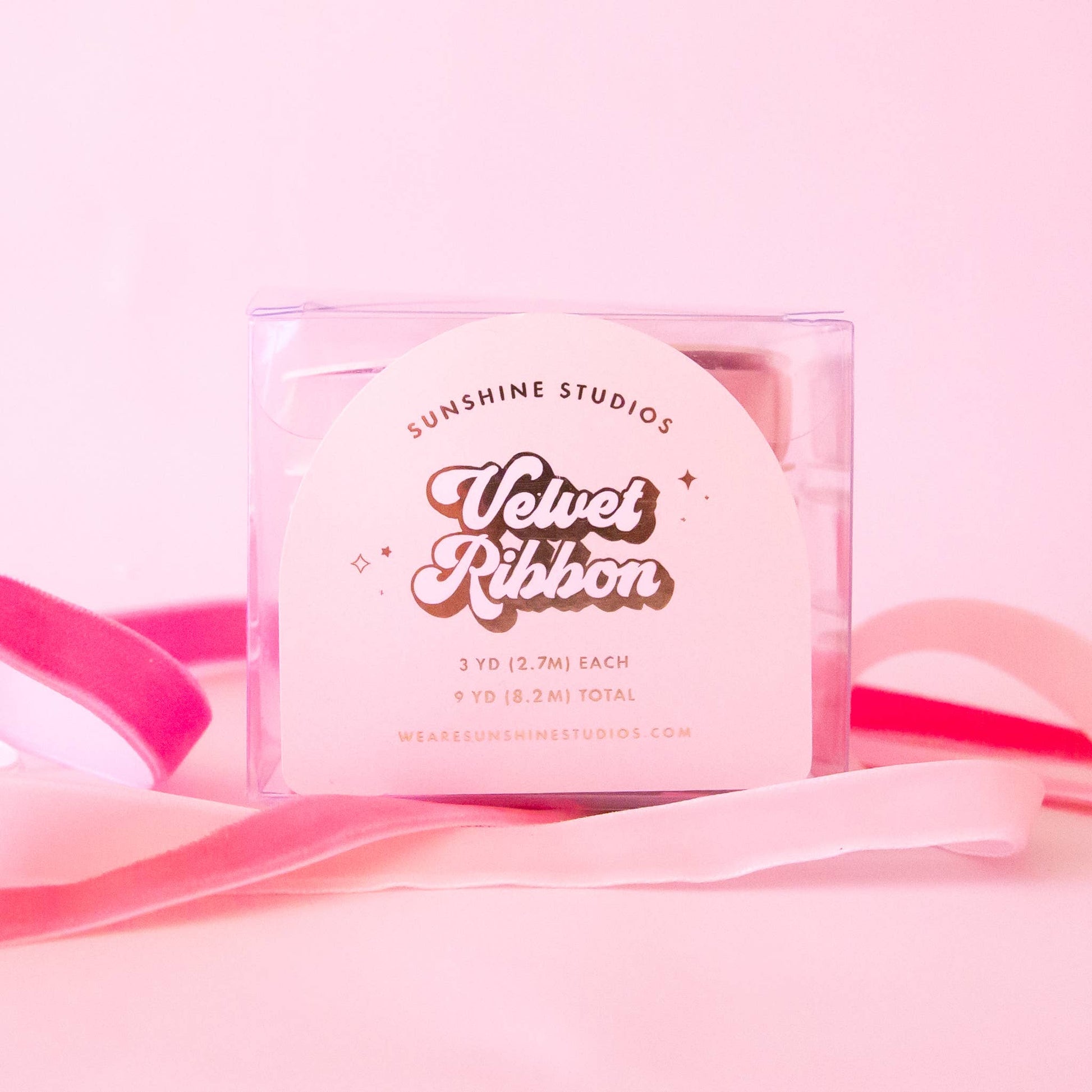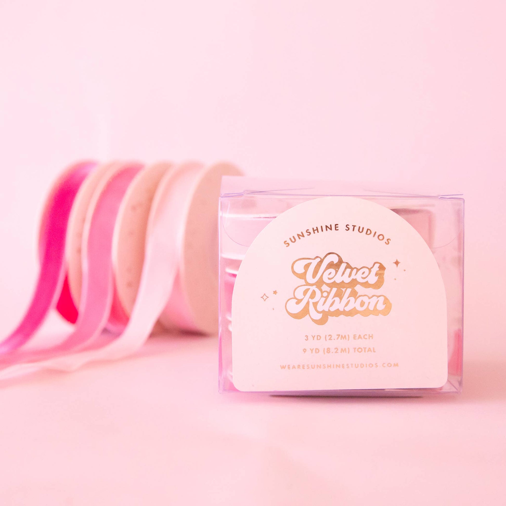 Step up your gift wrap game with our Velvet Ribbon Pack in the shade pink featuring three different colored spools of ribbon, perfect for adding a special touch to your present!