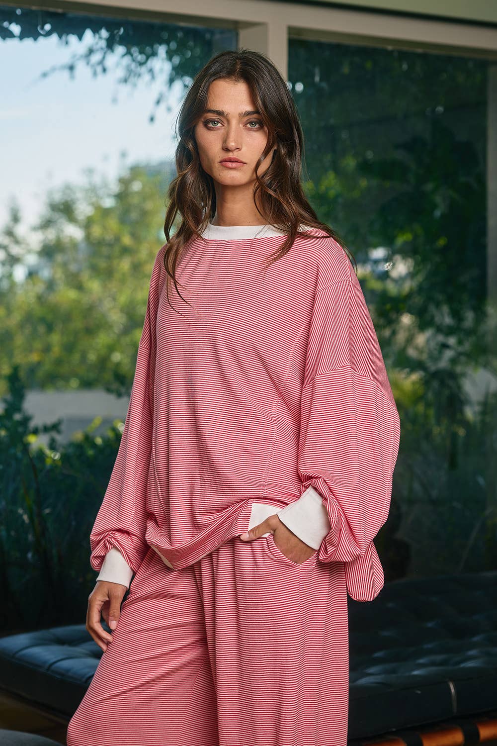 Cherry Reversible Striped Knit Sweatshirt Top