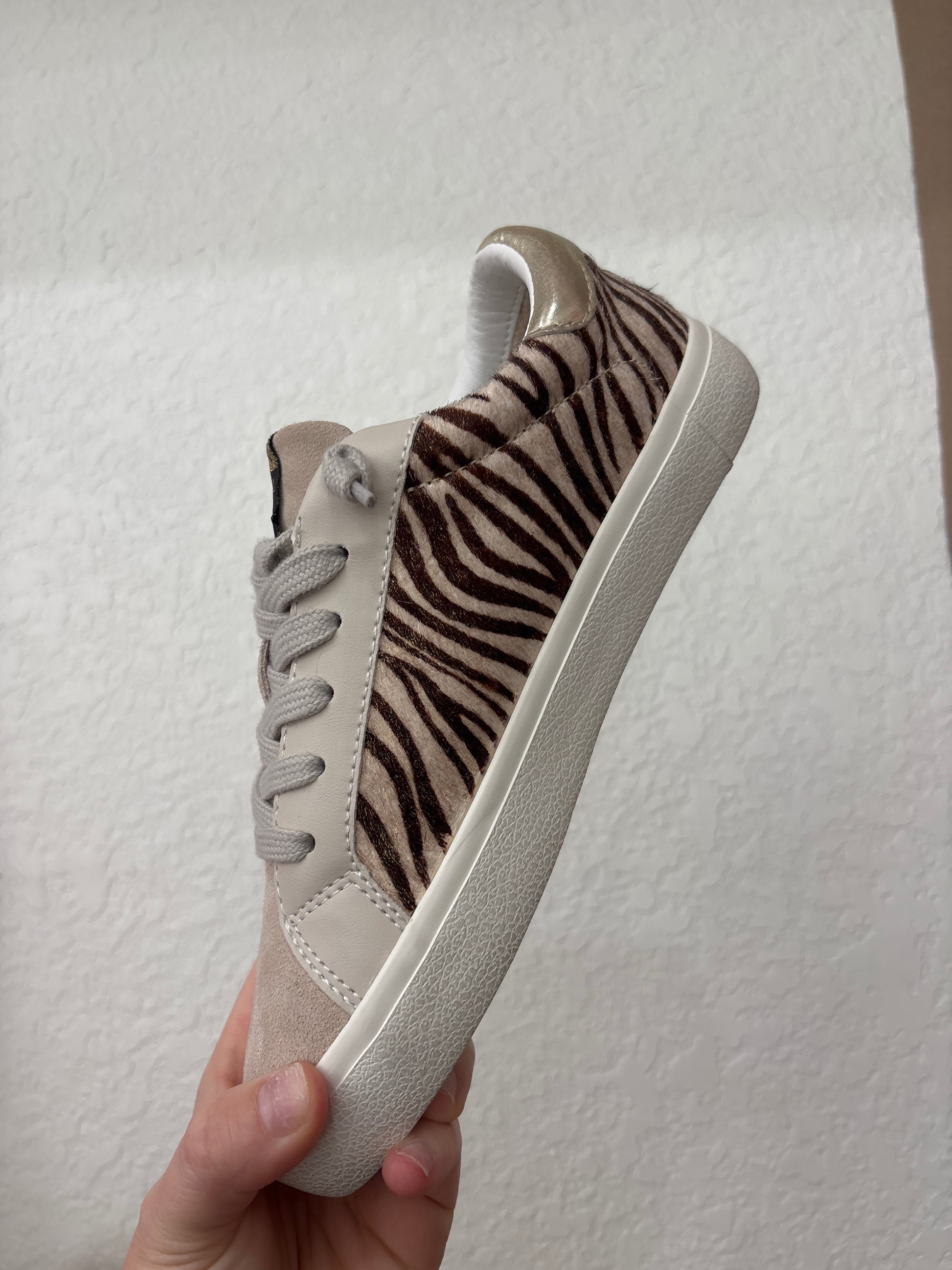 Step into bold style with the Safari Star Sneakers by Vintage Havana. Featuring a chic zebra-print design accented with metallic gold details and the brand's signature star patch, these sneakers are the perfect mix of wild and glam. With their cushioned sole and easy slip-on lace design, they'll keep you comfortable while turning heads.Ā Dress them up with your favorite jeans or down with a casual dress-either way, these sneakersĀ bring instant edge and personality to your look.